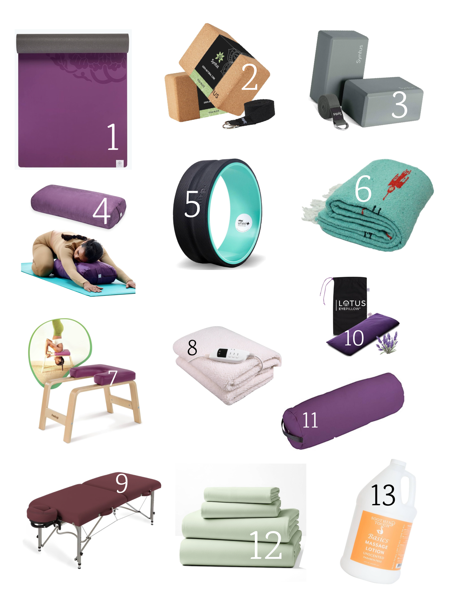 I recommend having at least one firm bolster, two is best. Bolsters are more stable than pillows and are helpful props to keep on hand. If you really want to splurge on a bolster set, I recommend the Crystal Cove Yoga Cushion Set (Brentwood Home).
